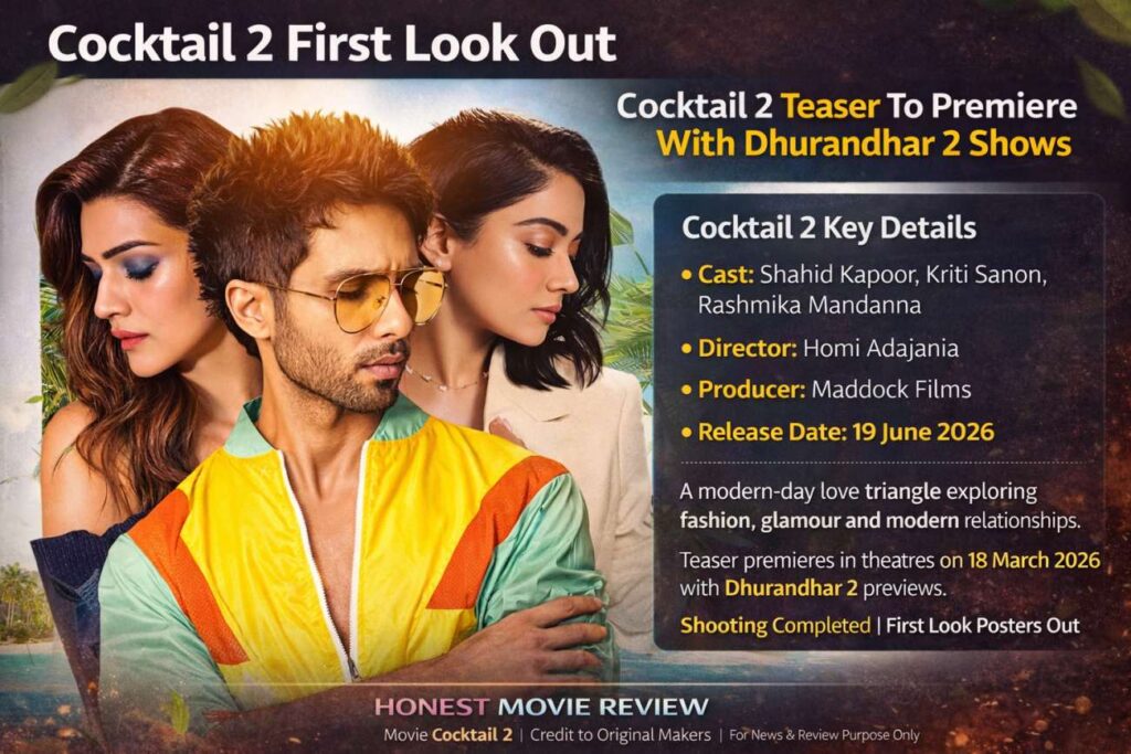 Bollywood ki upcoming romantic drama Cocktail 2 ab officially headlines mein aa chuki hai. Industry reports ke according film ka teaser jaldi hi theatres mein release hone wala hai, jisse fans ka excitement kaafi badh gaya hai. Yeh teaser Dhurandhar 2 ke paid preview shows ke saath attach kiya jayega, jo Bollywood marketing strategy ka ek powerful step mana ja raha hai.